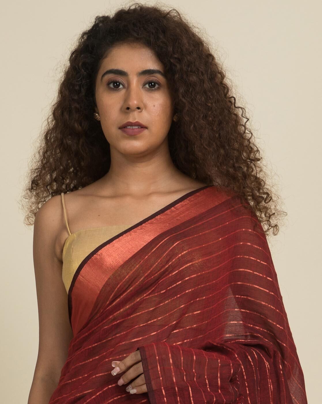 • The model is wearing a blouse from our in-house wardrobe, this saree does not come with a blouse piece