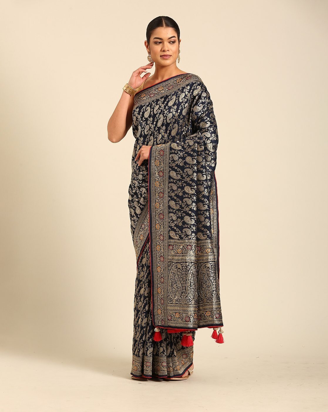 Women Woven Saree with Tassels